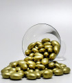 Com um calibre large nossas Amêndoas Confeitadas Douradas, medem de 1,9 cm a 2,2 cm de comprimento por 1,5 cm a 1,7 cm de largura, com uma forma ovalada e robustas possuem variações pequenas de tamanho de uma para a outra, com crocância firme, sabor doce leve, textura extremamente lisa e brilhante.